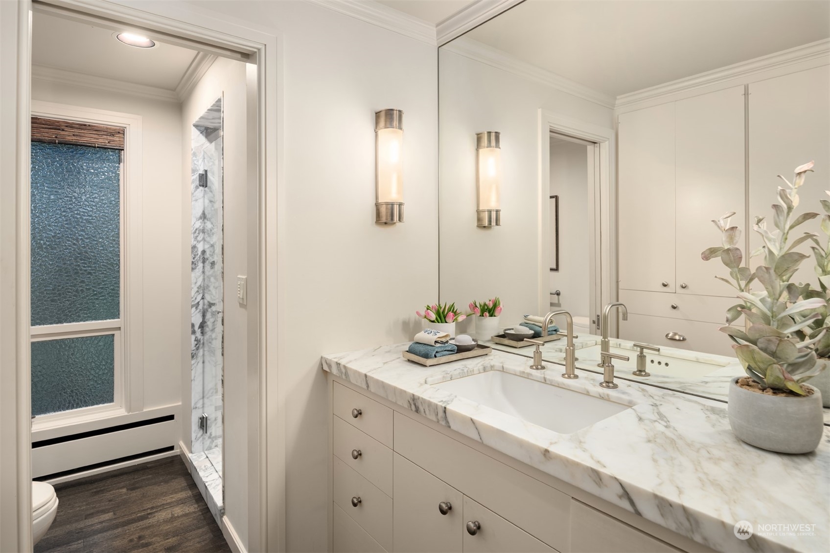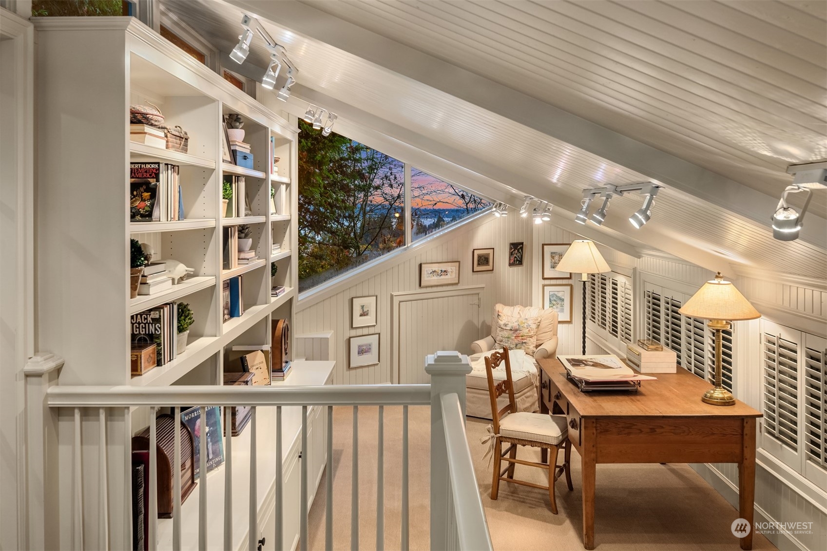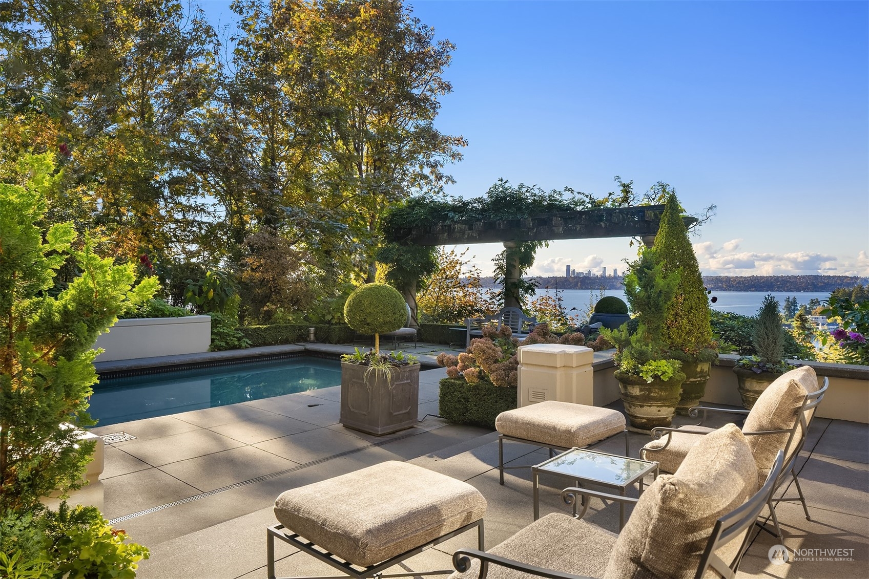 Rare Find! An alluring casually elegant home sits poolside within a private, gated estate cocooned in 2.6+ acres of magical curated gardens overlooking Lake WA, the city skyline and mountains. An easy flow from warm, welcoming indoor spaces to equally inviting outdoor spaces nurtures a powerful indoor-outdoor connection.Dramatically scaled columns, a pyramid skylight and bespoke chandelier define the space. Lavish use of millwork; cased beams; French limestone fireplaces. The expansive property offers privacy and tranquility; its beautifully manicured grounds provide a serene escape from the ordinary. A true oasis for those seeking peace and luxury. Creative Team: Doug Rasar, Interiors; David Pfeiffer, Landscape; Patrick Brennan, Architect.